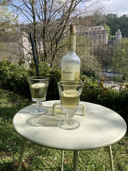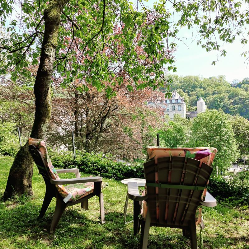 ‘Le Bariton’ beschikt over een gedeelte van de oude terrassentuin. Hiervoor loop je zo’n 25 meter langs het wandelpad omhoog en dan kom je in je eigen tuin waar de luie stoelen al op je staan te wachten. Omheind door oude muren en rotsen van minimaal 2 meter hoog en gaas/hekwerk van 1m20. Van hieruit heb je een geweldig zicht op het kasteel d’Ursel, de Ourthe-rivier en het park met buxusfiguren Topiaires.