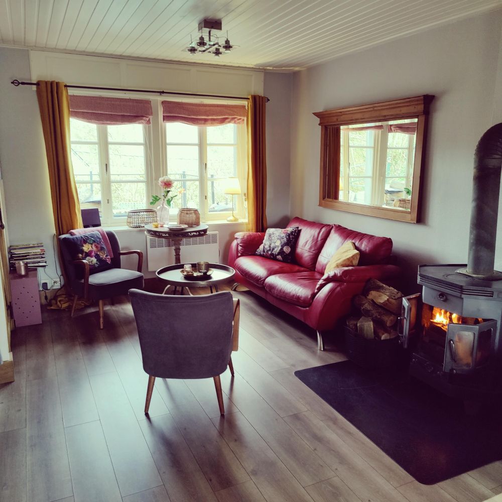 Ook aanwezig zijn een radio/cd-speler, Smart-tv met Netflix (even inloggen met je eigen code) en nostalgische dvd-speler (dvd’s liggen voor je klaar). Een heerlijke houtkachel met GRATIS stookhout (dus niet betalen per mand), fijne bank en gezellige stoeltjes.